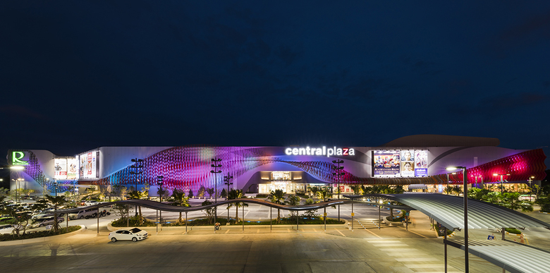 Situated along a major highway just south of Bangkok en route to the resort town of Pattaya, the design of the facade for the Central Plaza Rayong facade explores the potential of the facade to provide a visually engaging and seemingly kinetic appearance to attract the attention of passers by.