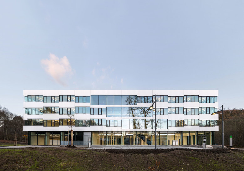 In a narrow time frame of just 21 months, a four-storey institute building has been both designed and built for the University of Saarland, creating a gatehouse situation for the eastern entrance of the University.