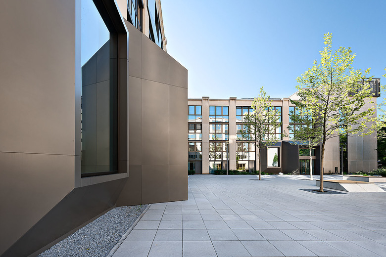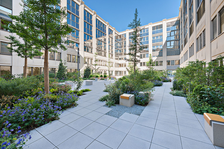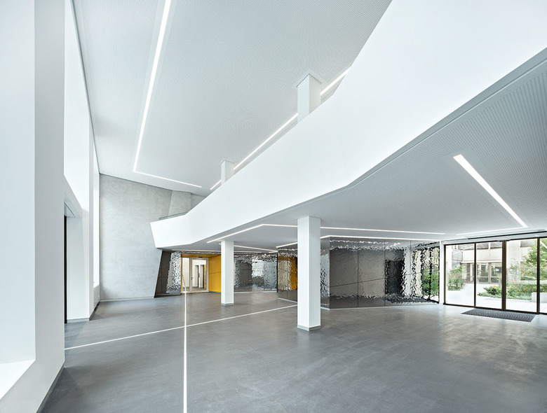 Zugänglichkeiten in Form von neuen, repräsentativen Lobbys wurden neu definiert, eine Adresse gebildet. Deren moderne Gestaltung lehnt sich bewusst nicht an die Vorgaben des Bestandes an. Es stellt ein stilistisches Störelement dar, welches zunächst nicht mit der visuellen Darstellung des Gebäudes korrespondieren möchte. Auf diese Weise soll die Neugier des Betrachters angeregt und zu näherer Auseinandersetzung bewegt werden. Dreidimensionale Fassadenelemente setzen sich vereinzelt über das gesamte Fassadenbild fort und bilden kontrastreiche Akzente zur Bestandssituation. Die Erneuerung der Architektur setzt sich in expressiv anmutenden Eingangsfoyers, sowie öffentlichen Gebäudeflächen, fort. Funktional wird das Gebäude in flexibel nutzbare Einheiten neu aufgeteilt. Durch vielfältige Nutzungskonzepte bildet das Objekt innerhalb des umliegenden Quartiers einen neuen Schwerpunkt, welcher das Gebäude lebendig macht und für künftigen Mieter eine Anziehungskraft bietet. Das Landschaftskonzept ergänzt diesen Anspruch durch eine moderne Formensprache, zahlreiche Durchgänge ermöglichen dem Nutzer eine Durchwegung des Gebäudes in erdgeschossiger Ebene.