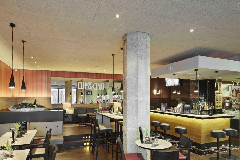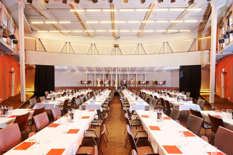 Massgebliche historische Elemente wurden grösstenteils verwendet und teilw. schonend ergänzt. Der Veranstaltungssaal für ca. 300 Personen wurde unterkellert und begradigt. Die grösste Veränderung besteht in der Öffnung des Saals zum Foyer hin, und zur Landstraße mit einer nach oben gleitenden Wandscheibe aus Stahl. Es kann somit der Kultursaal verschiedenste Nutzungen und Funktionen erfahren. Die Hauptachse des Gebäudes verbindet den Saal, die Gastronomie und den Hof bis zur Landstraße.