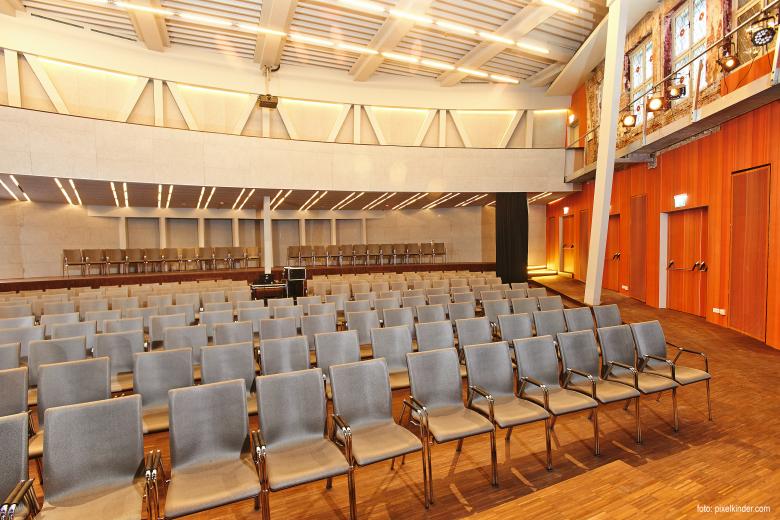 Der Saal der ursprünglich mit einer Holzkonstruktion überbaut war, wurde mit einer massiven Deckenkonstruktion überspannt.