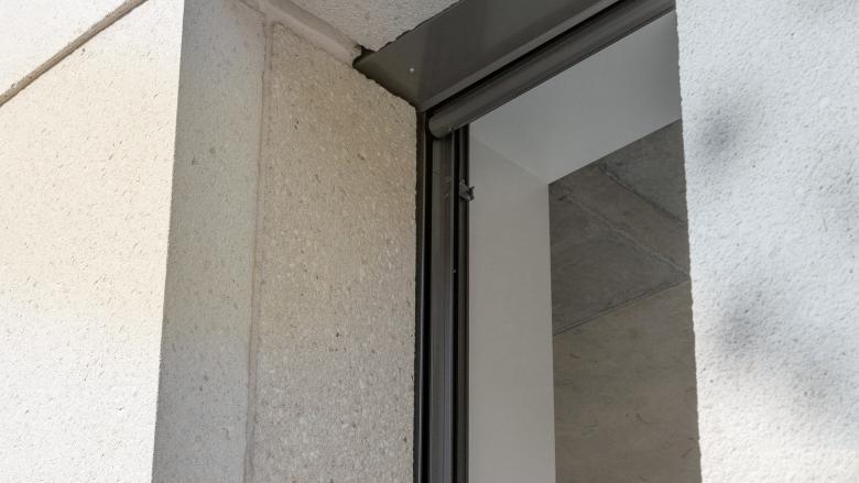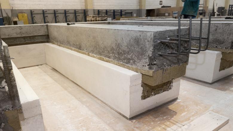 Für eine Betonsandwichfassade mit integrierter Kerndämmung sprachen zudem auch die guten bauphysikalischen Eigenschaften von Beton im Innen- und eine hohe Dauerhaftigkeit im Außenbereich. Die Innenseite der Fassadenkonstruktion wurde dabei als tragende Ebene hergestellt und mit Mineralwolle gedämmt. Durch die Fenstergeometrie mit den tiefen Laibungen ergaben sich Dämmpakete mit einer Stärke von bis zu 35 Zentimetern. Die großen Auskragungen mussten bei der Bewehrung berücksichtigt werden. „Die statisch und konstruktiv große Herausforderung bei der Befestigung der Außenschale war ein Ankersystem, welches den Kraftfluss sicherstellt, also das Gewicht der Fassade durch die dicken Dämmpakete auf die dahinter liegende Tragstruktur ablastet“, erklärt Jan Akkermann. Die Lösung zur kraftschlüssigen Verbindung der äußeren Vorsatzschale zur inneren Betonschale und gleichzeitig thermischen Entkopplung der Betonfassade fanden die Baubeteiligten im Schöck Isolink Typ C. Das punktuelle und vom DIBt zugelassene Verbindungselement Isolink besteht aus Combar, einem von Schöck entwickelten Glasfaserverbundwerkstoff, der sich durch eine besonders hohe Zugfestigkeit auszeichnet und damit hoch belastbar ist.