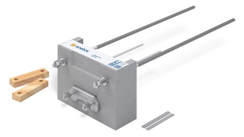 Schöck Isokorb T Typ S besteht aus zwei Modulen und überträgt, je nach Anordnung, Momente, Quer- und Normalkräfte. Das erleichtert die flexible Anpassung an individuelle Anschlusssituationen. „Der modulare Aufbau kam uns sehr entgegen“, sagt Könecke. „So konnten wir die Kräfte gut trennen und frei wählen, wie weit wir die Module auseinanderziehen.“