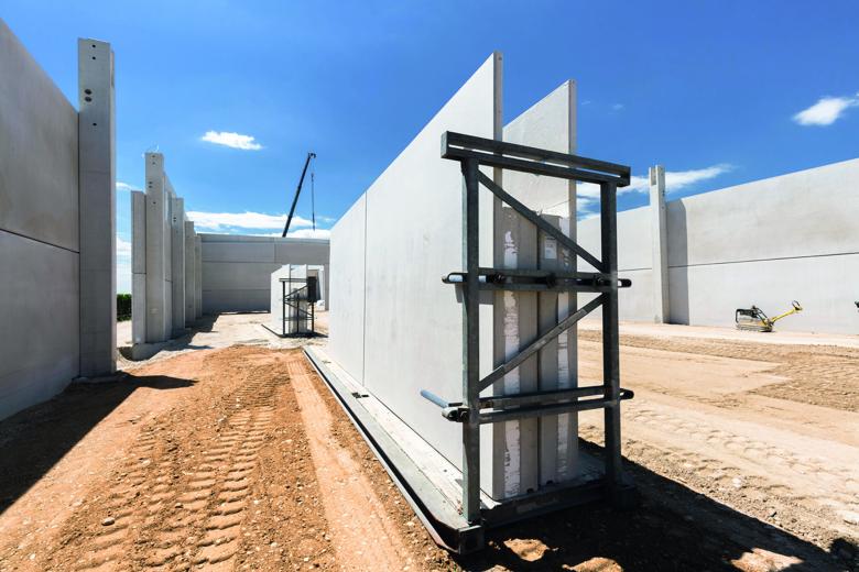 Den schnellen Baufortschritt bei der Errichtung der Lagerhalle mit ihren beeindruckenden Dimensionen garantiert der Einsatz von Fertigteilen. Insgesamt 3.500 Quadratmeter fixfertige Wandelemente wurden mittels Tieflader antransportiert und in lediglich vier Wochen vollständig zusammengebaut. Ebenso wie bei der Weinherstellung kommt auch bei der Produktion der Fertigteile innovative Technik zum Einsatz. Um eine ausreichende Wärmedämmung für die Lagerung und Nutzung der Halle sicherzustellen, wurden die einzelnen Wandteile als Sandwichelemente mit innerer und äußerer Sichtbetonschale und zehn Zentimeter starkem Dämmkern gefertigt.