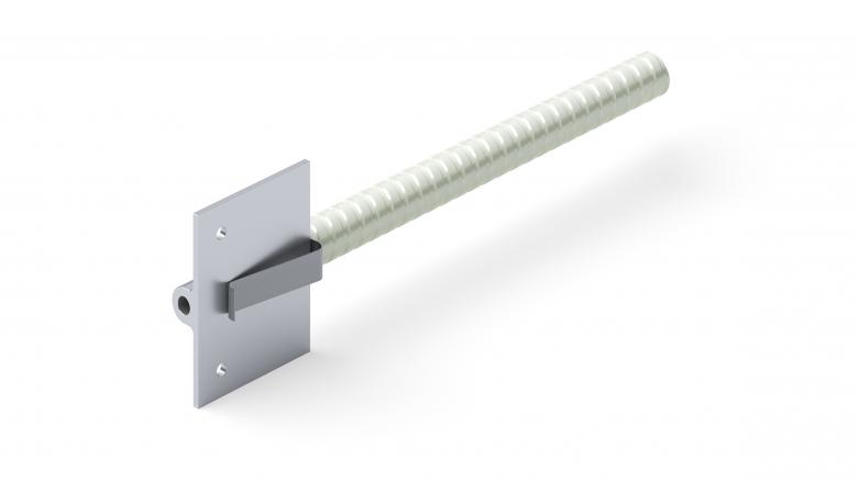 Für die Montage der VHF erfolgte im ersten Schritt die Befestigung des Tragprofils (100/50/2,1 Millimeter) mit Schöck Isolink nach den Prinzipien eines Verbunddübels. Hierfür wurde ein Bohrloch erstellt und anschließend gereinigt. In dieses injizierten die Fassadenbauer einen 2-Komponenten-Verbundmörtel, in den anschließend Isolink Typ F in 180 Millimeter Länge eingesetzt wurde. Ohne Anstechen oder Spezialwerkzeug wurde darauf das Dämmmaterial (Mineralwolle WLG 035) in 140 Millimeter Stärke über den Anker gedrückt.