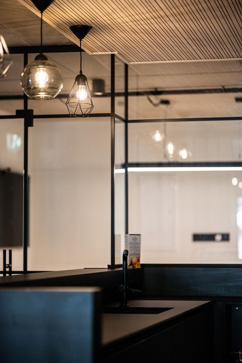 Leitidee des Designs ist es, den SNOW Charakter und das Branding zu integrieren, und dennoch ein einzigartiges und individuelles Ambiente für das Team zu schaffen. In Übereinstimmung mit diesem Gedanken wurde viel Wert auf Varietät der Materialien gelegt, um den Kund:innen vor Ort verschiedene Gestaltungsmöglichkeiten aufzuzeigen: So präsentiert sich die Decke des Büros aus Sichtbeton in Kombination mit einer abgehängten Decke aus Holz als Gestaltungselement. Diese Verbindung verleiht dem Raum eine industrielle und zugleich warme Atmosphäre. Des Weiteren bestehen die Oberflächen aus verschiedenen Materialien; wie Schränke in massivem Eichenholz, Zwischenwände und Türen aus Glas und Stahl sowie Schreibtische aus Linoleum. Diese Materialvielfalt erzeugt ein ansprechendes, dynamisches Arbeitsumfeld, das den Mitarbeiter:innen als Inspirationsquelle für ihre tägliche Arbeit dient und den Kundinnen und Kunden verschiedene Stilrichtungen darbietet.