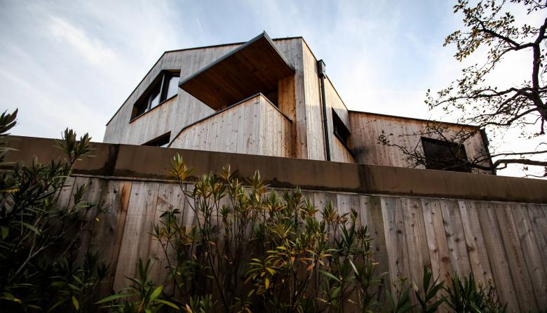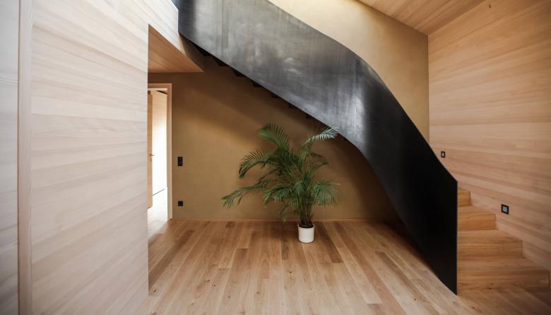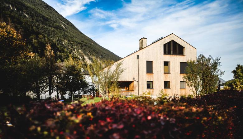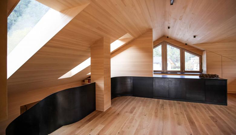 Ökologisch bauen war bei der Aufstockung in Landeck das Um und Auf. Es war eine Herzensangelegenheit der Bauherrschaft, so gut wie möglich auf chemische und erdölbasierende Werkstoffe zu verzichten. Die Lage des Grundstücks, inmitten der Natur, war der Bezugspunkt bei der Planung. Dementsprechend sollte der Baukörper Ästhetik und ökologischen Geist vereinen. Die Konstruktion besteht aus einer kompletten Holzverkleidung und legt einen einheitlichen Mantel über das Bauwerk. Dieser verleiht der Architektur eine elegante und schlanke Wirkung.