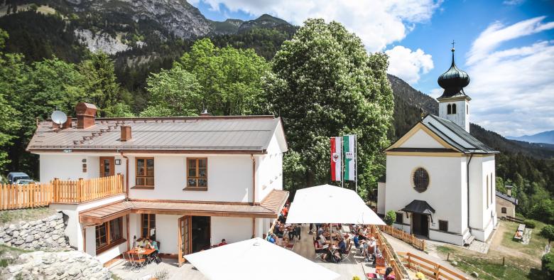 Das Gasthaus Romediwirt in Thaur befindet sich auf rund 800m in einer malerischen Umgebung und ist nur wenige Meter von der Romediuskirche entfernt, welche ein beliebtes Ausflugsziel für Pilger und Wanderer ist. In unmittelbarer Nähe befindet sich die Burgruine der Gemeinde Thaur, wodurch die Geschichtsträchtigkeit des Ortes spürbar wird. An diesem Ort sollte ein Bauwerk entstehen, welches sich bewusst in die Umgebung eingliedert. Die kraftvolle Atmosphäre sollte gestützt werden und die idyllische Lage sollte durch ein gemütliches Gasthaus bereichert werden.