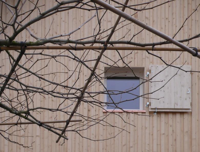 Das Projekt sah den Einbau einer kleinen Wohnung in einen bestehenden, baufälligen Holzschopf vor. Die vorgängige Entrümpelung diente der Entscheidungsfindung, wieviel der vorhandenen Substanz weiterverwendet werden konnte. Sichtbar blieben das Holztragwerk des Daches und des Obergeschosses, während die Fassade und das Dach neu isoliert und verkleidet wurden. Im Innern wurde eine offene Raumunterteilung aus weiss gestrichenen Fermacellplatten konzipiert, die beide Geschosse räumlich verbindet. Die Wohnung verfügt über eine Wohnküche, zwei Nasszellen und einen Schlafraum.