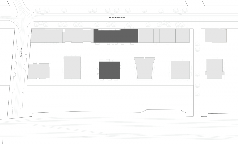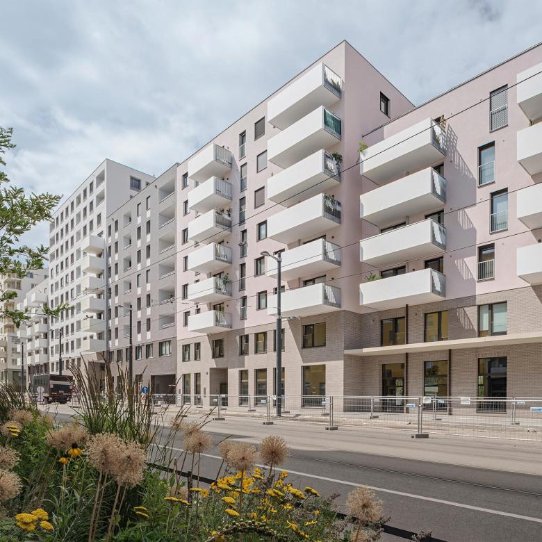 Im Rahmen eines Planerauswahlverfahrens für das Baufeld 7 am Areal des ehemaligen Nordbahnhofs in Wien wurden wir mit der Ausführung zwei gegenüberliegender Bauteile beauftragt. Das Baufeld zeichnet eine zweizeilige Gebäudeanordnung aus, die als durchlässige Filterschicht zwischen der Stadt und der öffentlich genutzten »freien Mitte« nahe den Gleisen dient. Das Volumen der straßenseitigen Gebäudezeile wird durch Höhenstaffellung einzelner Bauteile und Rücksprünge klar strukturiert. Großzügige Durchgänge öffnen den Blockrand und lassen Blickachsen ins Grün quer durch das Wohnquartier zu.