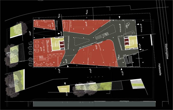 Wir arbeiten die Vorzüge des Ortes heraus und schaffen so ein Gesamtkonzept mit einer großstädtischen, lebenswerten und zukunftsfähigen Atmosphäre, durch Transformation des städtebaulichen Systems unter Erhaltung der Blickachse zum Stephansdom, Entwicklung des Baukörpers aus den Achsen und Fluchten des Stadtraumes, Verbesserung der Belichtungssituation der Nachbargebäude, Bildung eines gedeckten Vorplatzes, Ausbildung einer fließenden, „entmaterialisierten“ Erdgeschoß-Zone zur Aktivierung des Platzes an der Rathausstraße und Erhöhung der Benutzerfrequenz, eine auf Lichtstimmungen und Betrachtungswinkel reagierende und sich somit wandelnde charakteristische Fassade und nicht zuletzt durch eine wirtschaftliche und sinnvolle Konstruktion und Maximierung der belichteten Fläche aufgrund der Einschnitte in den Baukörper.