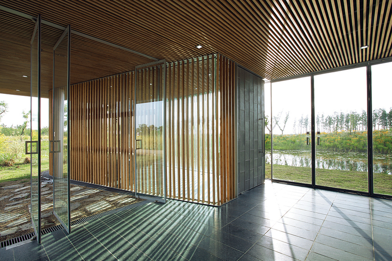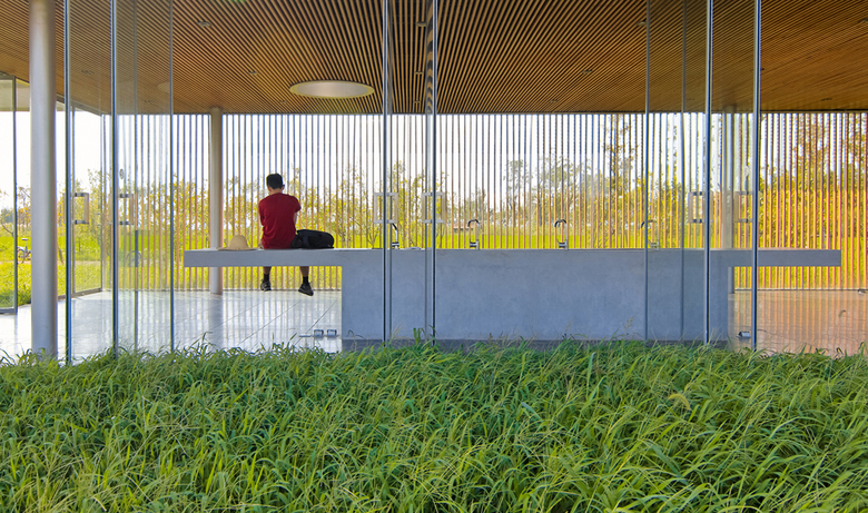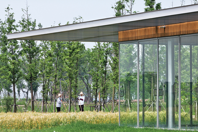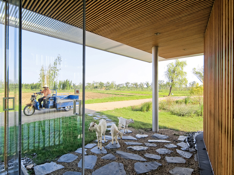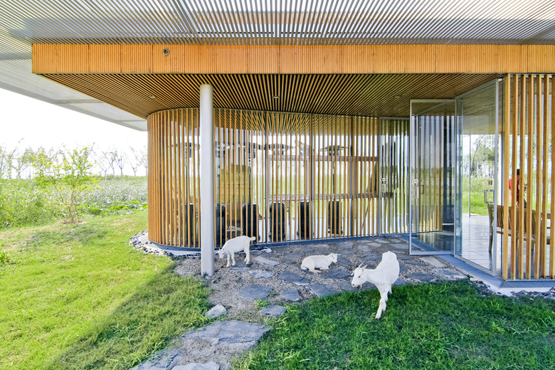 Sited in an Eco-farm alongside the Yang Cheng Lake, Kunshan,the project consists of 4 small scale public buildings: a club house, a harvest pavilion, a botanical showroom, and an information center. In the spring of 2012, the harvest pavilion became the first one being completed.