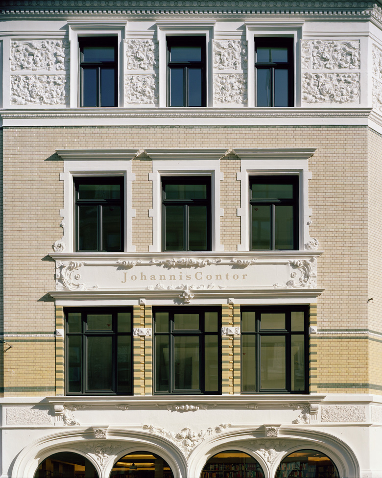 Der Neubau des Johanniscontor fügt sich stadträumlich in die Nachbarbebauung ein und verkörpert mit seiner hochwertig restaurierten historischen Fassade in Verbindung mit der modernen Aufstockung eine zeitgemäße, hochwertige und repräsentative Architektur mit hohem Wiedererkennungswert. Die Fassade wird geprägt durch einen hellen Putz, Ornament und Steinflächen, sowie großflächige Verglasung, die mit den Kontorhausfassaden der Nachbarbebauung korrespondiert.