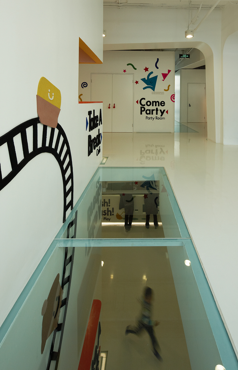 Located in a parkFamily Box comes alive from afar, wrapped in a glass facade embellished with children’s line drawings. Inside it is treated with low contrast finishes punctuated withactivities of color. A full program of swimming and game play to various classes such as music, dancing, crafting and cooking is available.