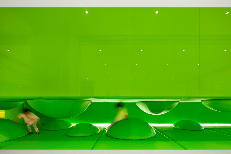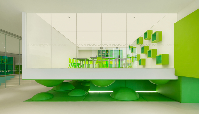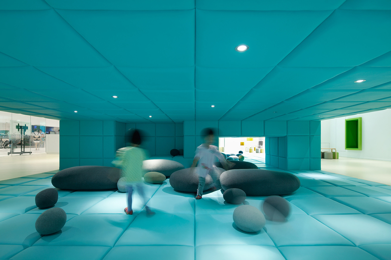 Early childhood education in China is rapidly developing. Situated in a shopping mall, Family Box welcomes the public with a library, shop and try-out classes for potential customers before directing its members to the children’s swimming pool, classrooms, open play areas and cafe.