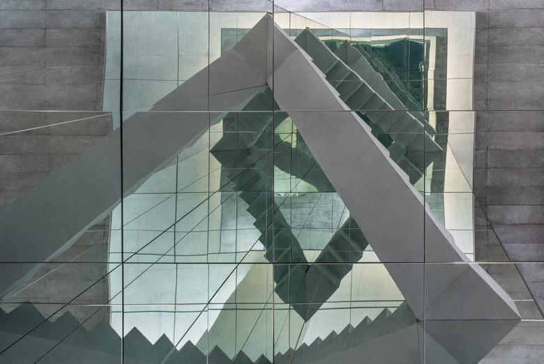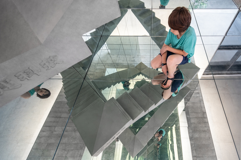 Stepping into this installation, viewers are surrounded by an infinite space created by the recursive effect. More puzzling, the stair joins its images in the mirrors creating an illusion of a closed path, reminding viewers of the famous work “Relativity” by Maurits Cornelis Escher. One can easily get confused to determine if it is going up or down. Within the space of visual dislocations, viewers can experience the transformation of and separation between reality and illusion, objective and subjective or individuals and groups.