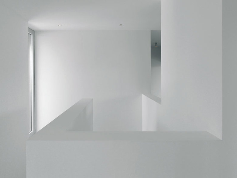 Der gesamte Entwurf entsteht aus der Bewegung eines weißen Wand-/Deckenbandes. Dieses beginnt als Grundstücksmauer an der öffentlichen Straße Mudronova, begleitet die Auffahrt, umrahmt winkelförmig einen Vorplatz, klappt um und wird zum Dach des EG, bevor es als mäanderndes Band die privaten Schlafräume der Botschafterfamilie "einhüllt".