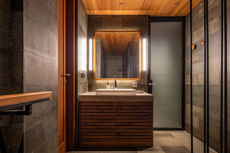 Dafür erfüllt jedes Haus eine bestimmte Funktion und bietet Platz für insgesamt bis zu zehn Gäste. Durch die erhöhte Bauweise haben die Bewohner einen atemberaubenden Blick auf die Umgebung und profitieren gleichzeitig von einer angenehmen Brise, die durch die offene Architektur optimal genutzt wird. Besonderer Wert wurde auf die Integration der vorhandenen Vegetation gelegt. Große Bäume wurden bewusst in die Architektur integriert, spenden natürlichen Schatten und schaffen Privatsphäre. Die Bauweise respektiert die Umwelt und verwendet nachhaltige Materialien wie Holz, das sowohl für die Außenfassade als auch für den Innenausbau verwendet wurde. Die warmen Holztöne schaffen eine angenehme, natürliche Atmosphäre und verstärken das Gefühl, eins mit der Umgebung zu sein. Ein weiteres prägendes Gestaltungsmerkmal ist das Lichtkonzept von studio nimmersatt. Indirektes Licht setzt Akzente und schafft eine stimmungsvolle Atmosphäre, so dass die Häuser bei Dunkelheit wie leuchtende Laternen im dichten Grün des Regenwaldes erscheinen. Die offene Gestaltung der Räume fördert den Dialog zwischen Innen und Außen und ermöglicht ein intensives Naturerlebnis.