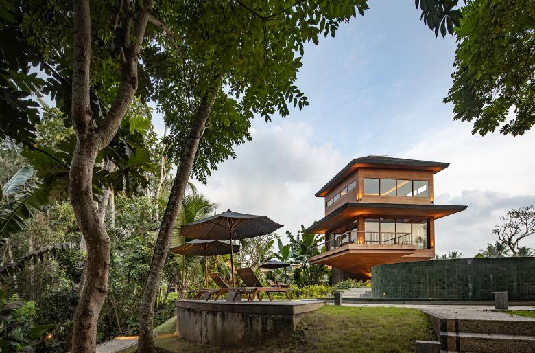 Mit dem Projekt Bird Houses hat der renommierte Architekt Alexis Dornier eine außergewöhnliche Unterkunft geschaffen, die sich harmonisch in die natürliche Umgebung inmitten eines tropischen Regenwaldes auf Bali einfügt. Das Ensemble, das durch seine leichte, fast schwebende Bauweise an moderne Baumhäuser erinnert, besteht aus drei Gebäuden, die auf Stelzen errichtet wurden.