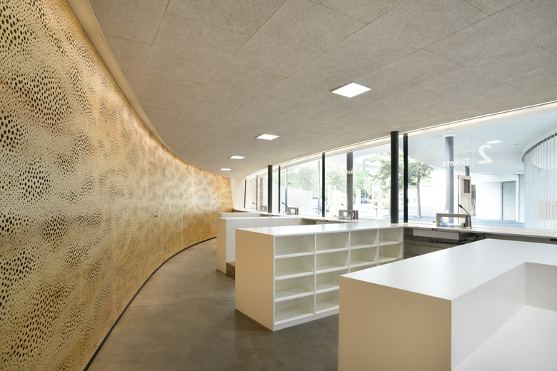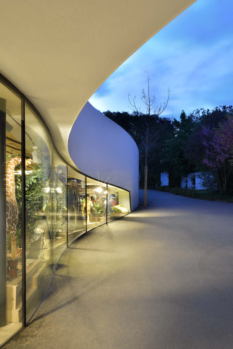 Der neue Eingangsbereich des Zoo Zürich auf dem Zürichberg reagiert sensibel auf den bestehenden, preisgekrönten Bau von Dürig Architekten (1999) und schafft durch seine organische Formensprache eine einladende Atmosphäre für die stetig wachsende Besucherzahl. Die geschwungenen Linien von Wänden, Schaufenstern und Dächern fügen sich harmonisch in den Bestand ein und leiten die Besucherströme intuitiv vom Vorplatz über Kassen, Besucherzentrum, Zooshop und Zoocafé bis zur neuen Zoobahnli-Haltestelle. Natürliche Materialien prägen das Innenraumkonzept, wobei eine eigens entwickelte Akustikplatte aus Verpackungssperrholz durch ihre fellähnliche Maserung und unregelmässige Lochbohrungen subtile Assoziationen zur Tierwelt schafft. Diese Gestaltungselemente fördern eine emotionale Einstimmung auf das Zooerlebnis und verbinden Funktionalität mit einer besonderen räumlichen Identität. Trotz des laufenden Zoobetriebs gelang die Realisierung dieser komplexen, ineinandergreifenden Anlage, die Besuchern ein atmosphärisch dichtes und zugleich funktionales Entree bietet.