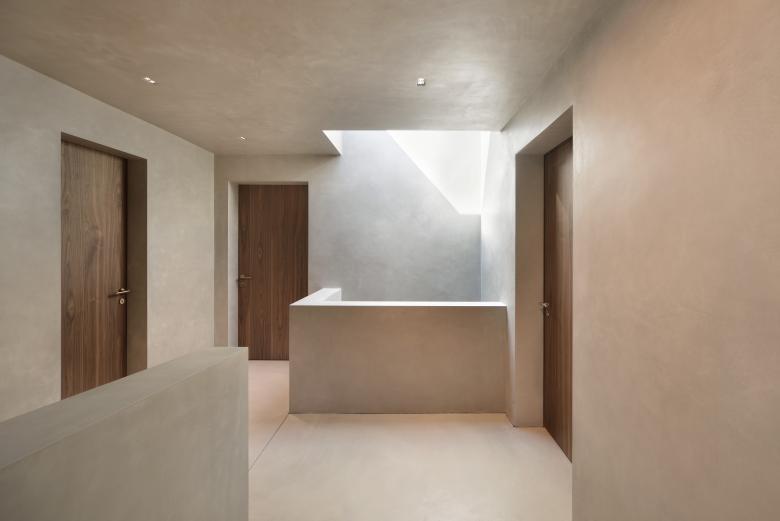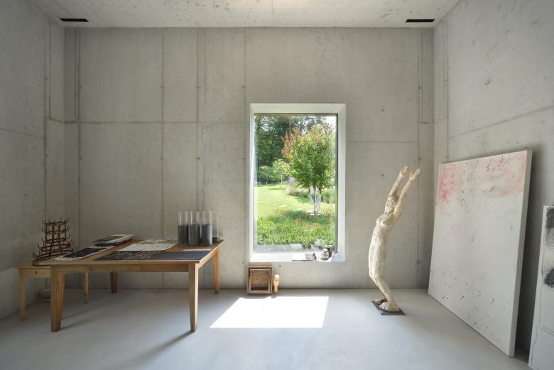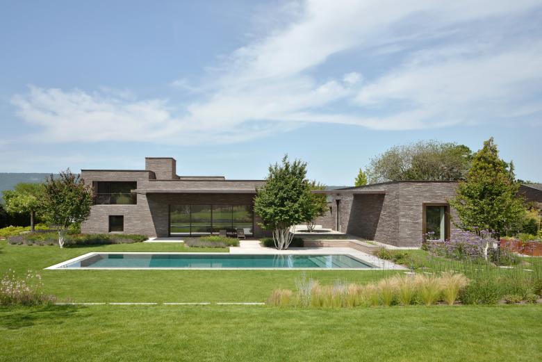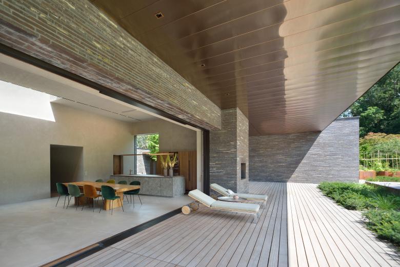 Auf einem parkähnlichen Grundstück, direkt angrenzend an die Landwirtschaftszone entsteht eine Villa mit besonderem Bezug zur Natur. Drei Volumen, bestehend aus Wohnbereich, Atelier und Garage, gruppieren sich um ein begrüntes Atrium. Die schweren Körper aus dunklem Klinker markieren eine erdverbundene Präsenz und werden umspielt von leichten, stützenfreien Vordächern, die nach dem Park zu greifen scheinen. Es entstehen spannendeZwischenräume, die den einzigartigen Blick in die Natur inszenieren. Die Natur wiederum umfliesst die Volumen und vernetzt das Ensemble mit seiner Umgebung. Der Außenbezug setzt sich im Inneren fort. Bewusst gesetzte, großzügige Fenster öffnen die Baukörper zum Park und ziehen diesen in den Innenraum. Architektur und Natur werden zu einer Einheit.