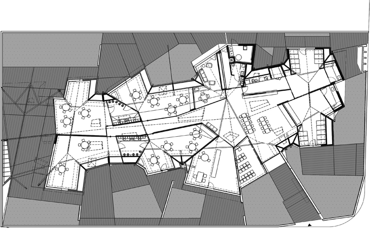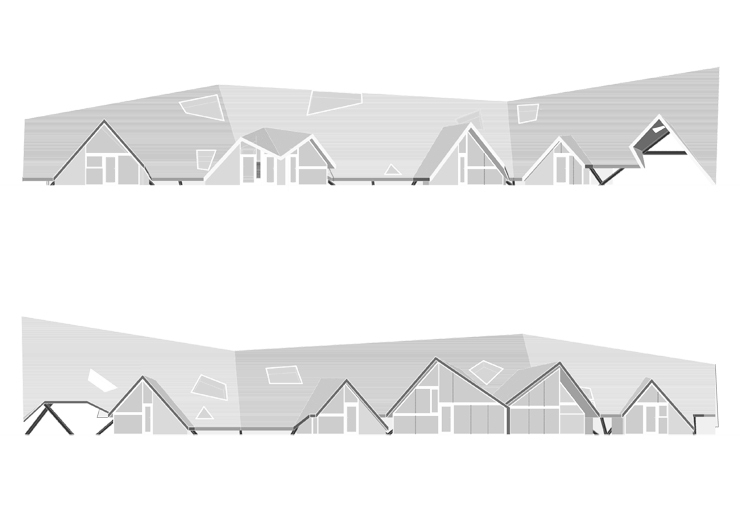 The geometry of the project articulates the space. Constructively inspired in a traditional mansard roof, we were interested in how it could remember the first pictures of a house children draw. Once inside people are surprised by the volume. The spatial experimentation is focused on three pyramidal bodies that intersect forming a single body with smooth changes of direction. The volume is crossed by twelve mansards, that open into a courtyard setting visual communication between interior and exterior. The fact that the roofs do not touch the ground and give the impression of floating and light can enter by the perimeter. The granite placated gives the building an urban image. The porch takes the whole height, being the highest place. The building has offered an innovative space for the town. The use for a kindergarten offers, if possible, more sense to architectonic experiment, which starts from the free view of childhood, the fascination of the kaleidoscope and the poetic image of a child on a swing.