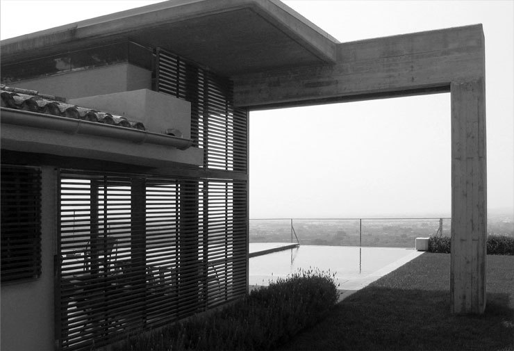 At Villa Joana, few but thought-operations completely change the configuration of both the existing dwelling and its immediate surroundings. A large portico with concrete cantilevered to both sides defines the new facade of the house, changing the traditional image of a opened with large windows to the landscape of Tarragona, view interrupted only by water depth the new pool. To access the existing sequence of parterres is replaced by straight lines and strong reinforced concrete house the existing ramps to gain height. The concrete walls extend existing contact with the pavement. The rugged topography of the area can give the house character and distinctive at the same time allows users to enjoy the view of the distant Reus landscape.