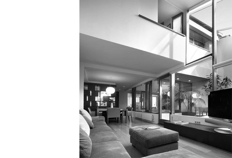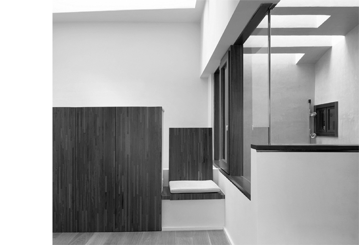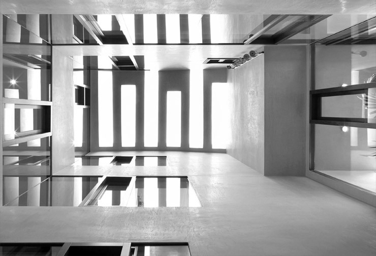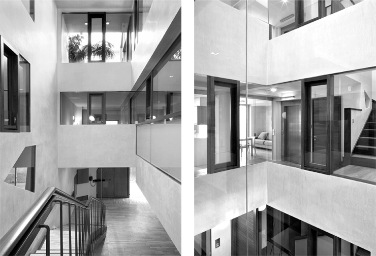 A central courtyard from the ground floor to the roof floor links all the rooms of the house together, so the created visual is continuous. A game involving fullness and emptiness generates the different spaces. The entry occurs in the ground floor where a wide stairs welcomes the visitor. The first floor works as an independent studio, while the liveliness takes place in the first floor and the attic.