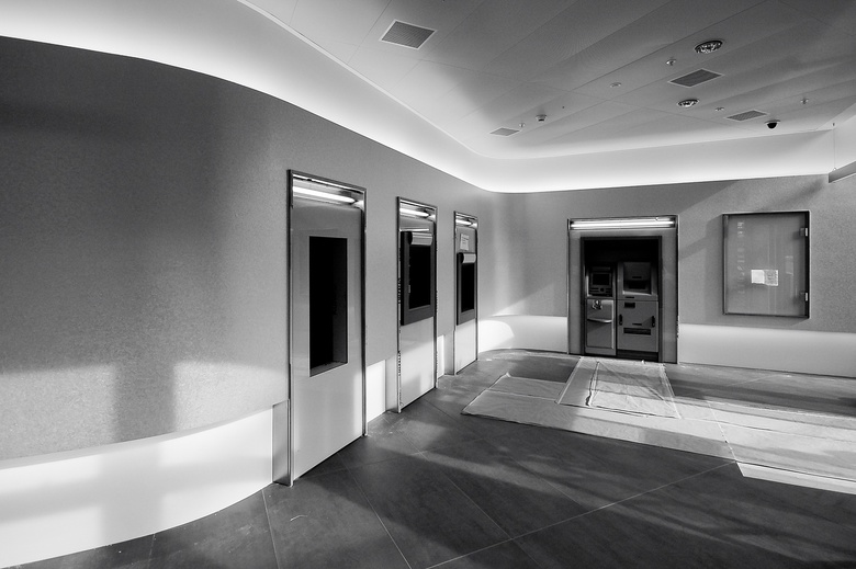 Das Geschäftshochhaus Prime Tower steht an der Hardstrasse im Gebiet des Maagareals in 8005 Zürich. Die Räumlichkeiten der Bankfiliale kommen im Erdgeschoss und im 1. Obergeschoss zu liegen. Das Raumprogramm umfasst eine Zwei-Zonen-Bank.