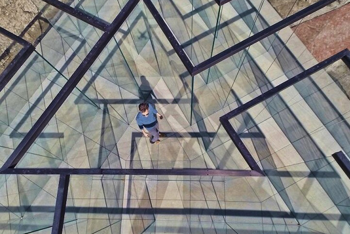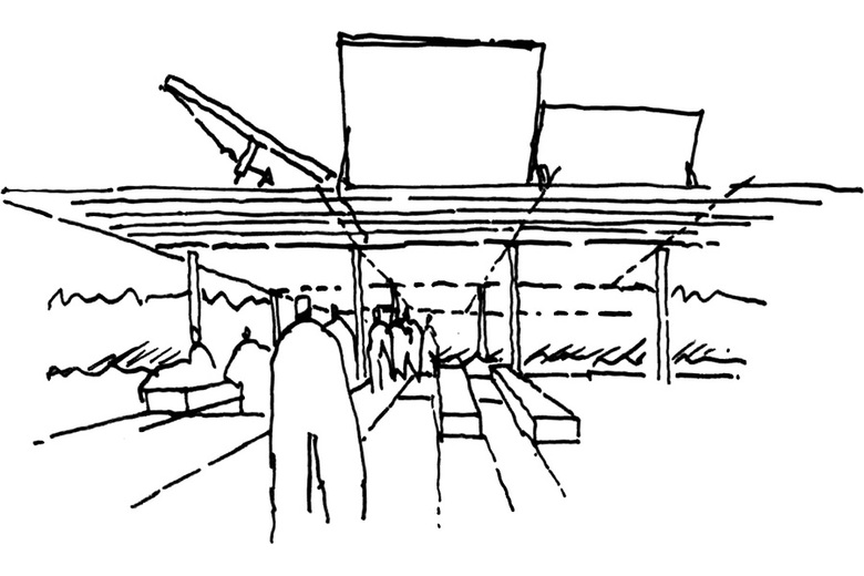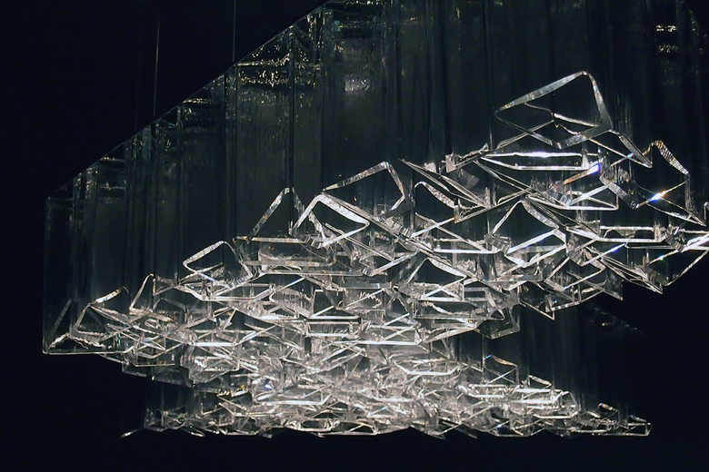 Daniel Libeskind's project for the Venice Pavilion is comprised of three elements: 100 of the architect's never-before-seen drawings mounted on glass panels, a chandelier made from hand-blown glass, and a sculptural "X" in front of the pavilion.