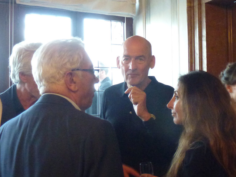 Last night was a small party for press at the Biennale office near San Marco. The man of the hour, of course, was Director Rem Koolhaas, who mingled for a while (and chatted on the phone) before getting on his boat.