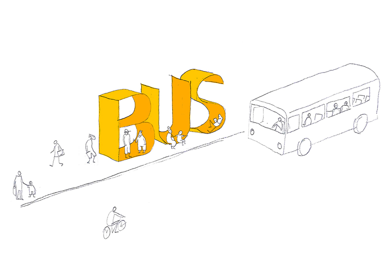 The letters B-U-S stand 14-feet-high in the conceptual sculpture and bus stop created by the Spanish collaborative mmmm… as part of the initiative TRANSIT – Creative Placemaking with Europe in Baltimore.
