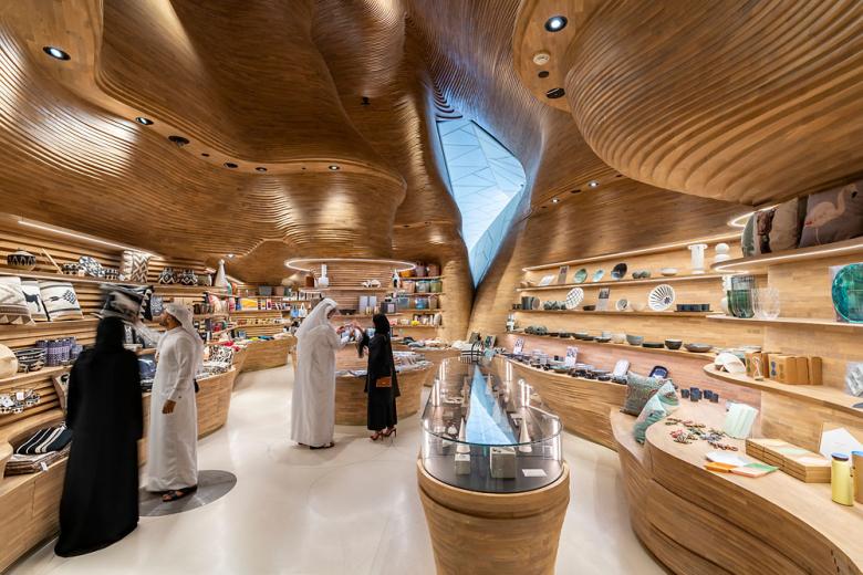 The design of the gift shop inside Jean Nouvel's National Museum of Qatar was inspired by caves, as explained by architect Koichi Takada in a short film from ERCO.