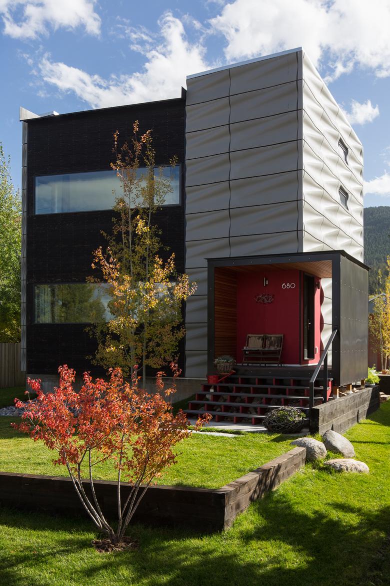 Just as this house is for two personalities – an architect and a chef – the exterior exhibits two main gestures: Sculpted panels made from fiberglass wrap the cube-like volume, while charred cedar pieces with horizontal windows break through at an angle. The combination is a...