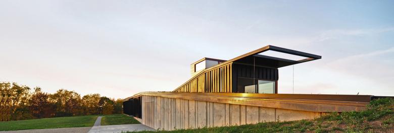 Designed for an engineer and an artist, the Topo House is an apt name, given the way it peels up gently from the Wisconsin landscape, melding itself with the site's topography. Johnsen Schmaling Architects' low-slung design can also be seen as a response to the state's cold...