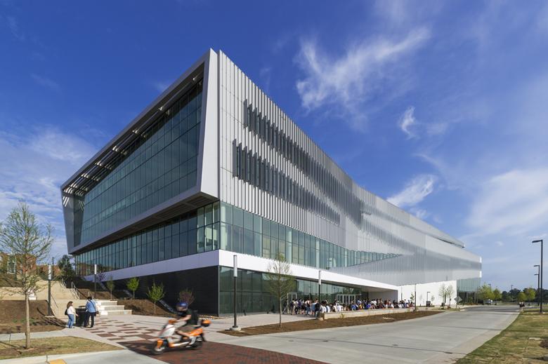 The Cyberinfrastructure Building houses Indiana University's 700-strong University Information Technology Services. This staff was previously scattered across several buildings on campus, but now they occupy an L-shaped building in a nearby technology park. SmithGroupJJR's design...