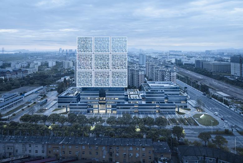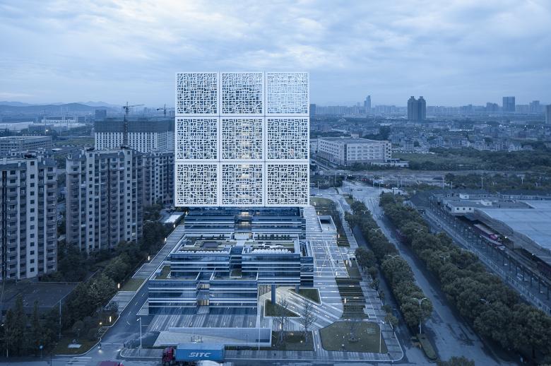 With staggered elegant cubic volumes and artificial lighting at night, the building presents a futuristic, instagrammable image throughout the day at the side of the Hangzhou-Ningbo Expressway, hence becoming an iconic landmark that represents Xiaoshan Innovation Polis.