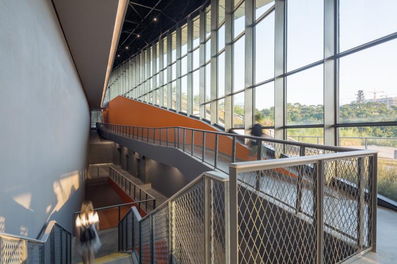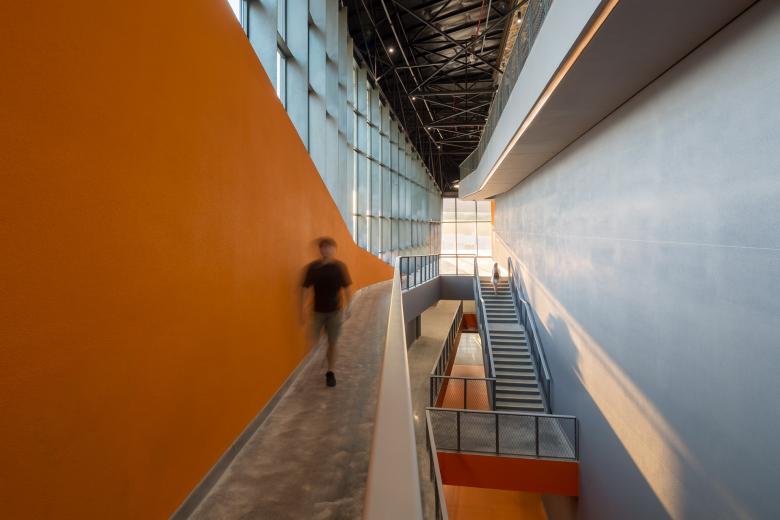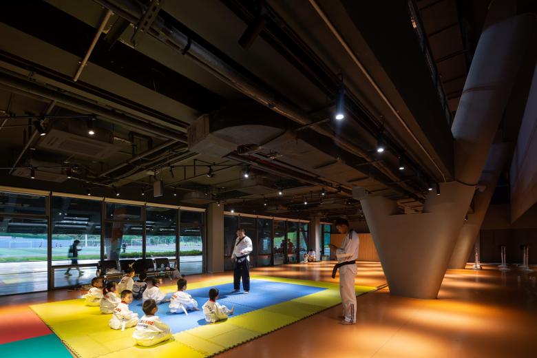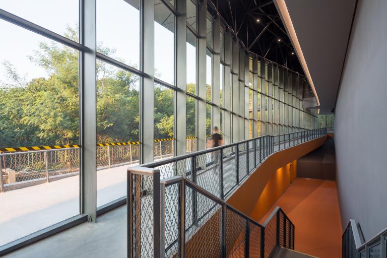 In order to reduce the impact on the original mountain and vegetation, the original huge building volume has been adapted to accommodate the mountain landscape. Inspired by the surrounding environment, multi-level flexible platforms, ramps, bridges and hiking trails are designed to make connections between indoor & outdoor spaces of different levels, establishing a series of open running routes. Several existing platforms were transformed into stadium steps. These non-traditional sports spaces and surrounding mountains constitute a comprehensive sports space system, breaking the limited utilization of closed venues.