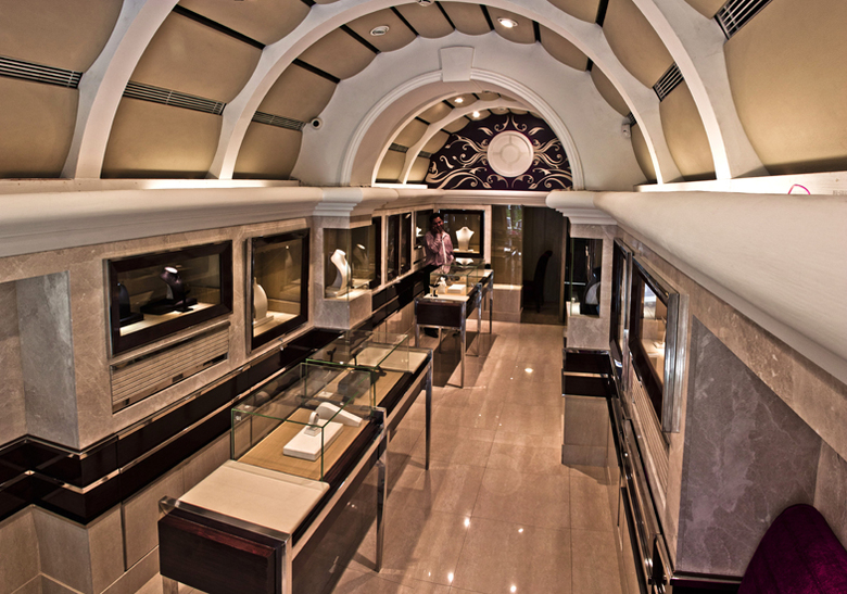 The project for the interiors of Leela Jewellers in Sunder Nagar. New Delhi was themed back to Colonial Era. The colonial feel of the closely located Lutyen’s Delhi had to be recreated in a contemporary way to symbolize a mélange of the old and new in this showroom.