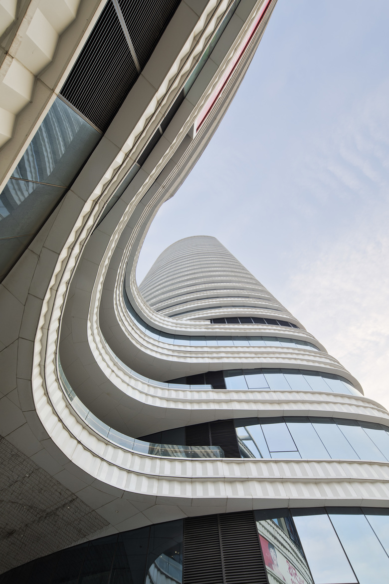 Es ist mit einigem Abstand das größte bis dato realisierte Bauvorhaben von Baumschlager Eberle Architekten. Mit über 361.000 m² Bruttogrundfläche ist die gebaute Mischung aus Büros, Geschäften und Wohnungen eine Stadt in der Stadt. Eine durchaus europäische übrigens. (Leucht-)Türme umschließen eine mehrgeschossigen Sockelzone, die den gemeinschaftlichen Kern der Stadt konstituiert. Hier finden sich die Geschäfte, die Passagen und kleinteilige Grünbereiche, die als points de vue die begleitenden Büro-Türme der INCITY haben.