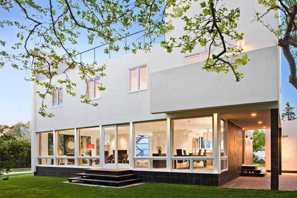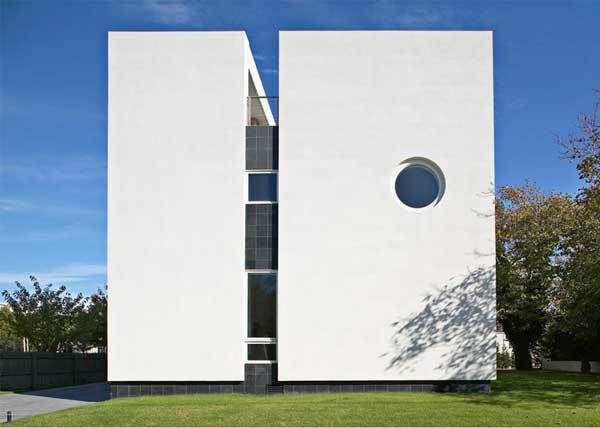 A new 5,000 SF house in an established Nassau County beach community. The principal materials are stone, stucco, steel and glass. The relatively blank façade provides privacy from the street, while the main living area opens to the side garden. A roof terrace offers panoramic ocean views.