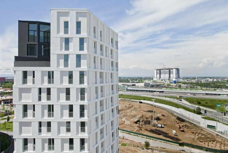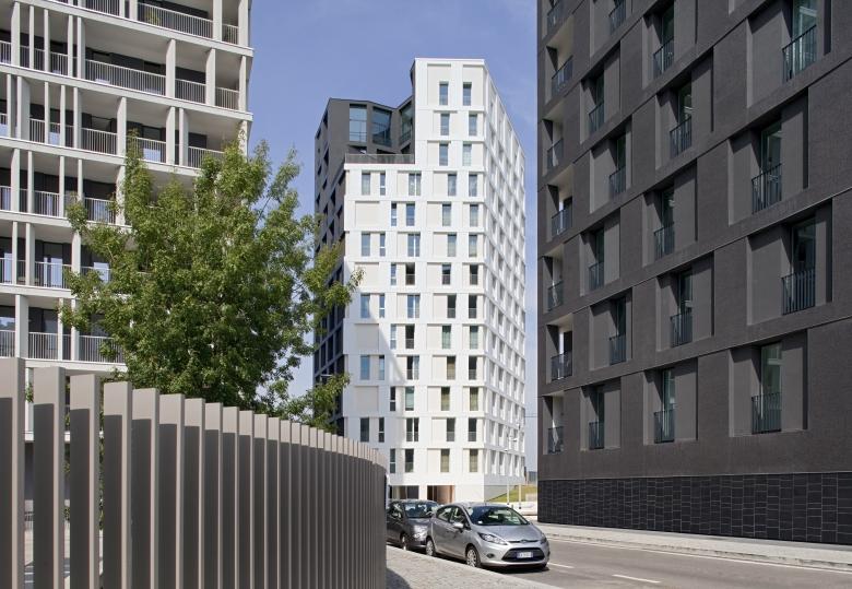 The plot R11 is located at the northern end of the Highrise Village, bordering the park Cascina Merlata, the largest housing development in Europe. Initially planned as a volume surrounded by a fence and meant to be a ‘gated community’, the architects proposed to break the plot into two parts to give back to the community a public space and create an urban door between the Village and the Park, the latter extending as a public square, inside the plot.