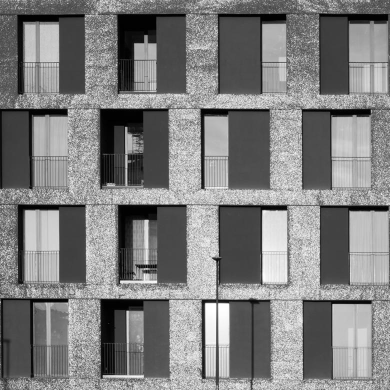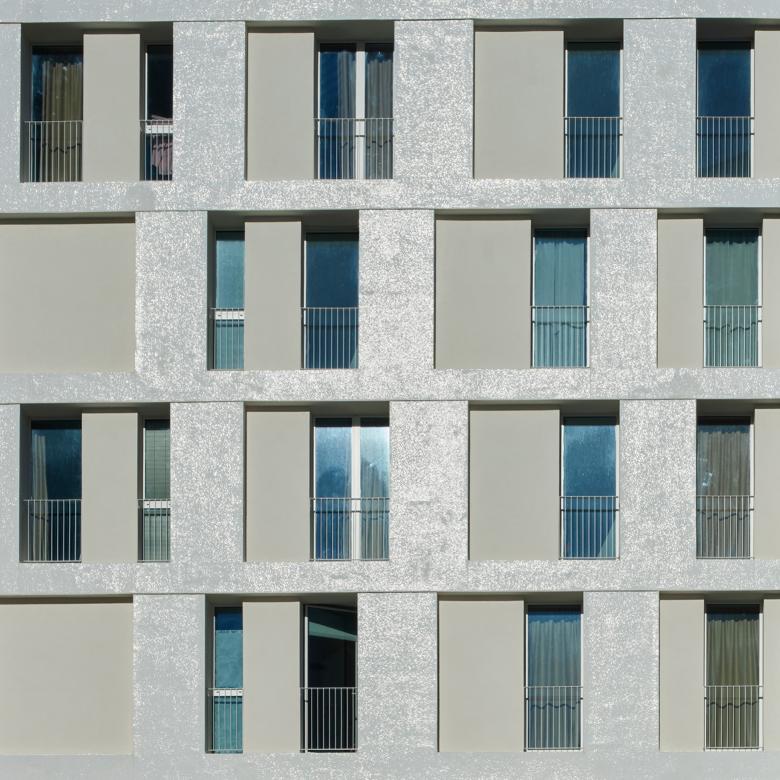 The composition of the façade is simple and has a regular mesh on which a series of differentiated stratifications are drawn in depth. The main pattern is determined by the regular design of a grid of large square openings that defines the size of the loggias. The texture is thus characterized by the irregular alternation of loggias, windows and blind parts covered with colors in accordance with the mosaic. Each material was also chosen for its durability and recyclability over time.