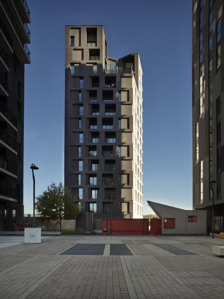 The towers are arranged on two underground levels of parking for 104 cars, technical spaces and cellars as well as a colorful outdoor playground for children that was designed with a participatory project in collaboration with the Social Housing Foundation.