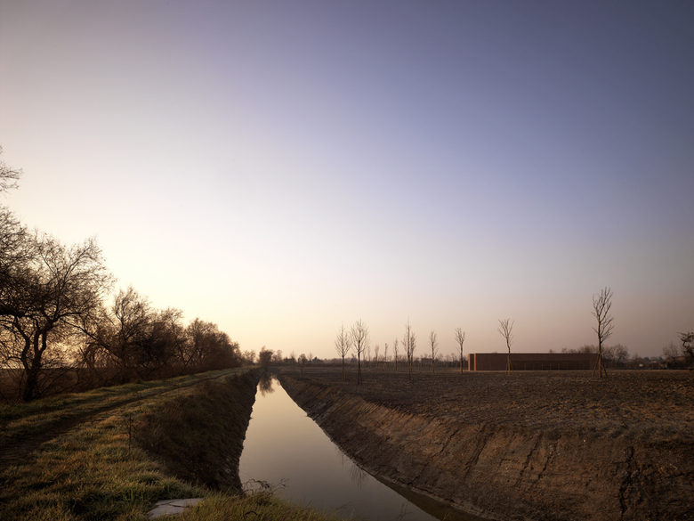 An infrastructure becomes landscape design. Located in the Nortehrn Lagoon Park north of Venice, on the southeastern edge of Sant'Erasmo island, the new water filtration plant is part of the general urban and environmental upgrading of the island that the Magistrato alle Acque di Venezia is implementing through the Consorzio Venezia Nuova, within the context of a programmatic agreement between the Magistrato alle Acque di Venezia, the Veneto Region and the Municipality of Venice.