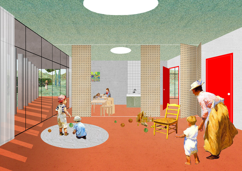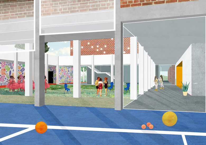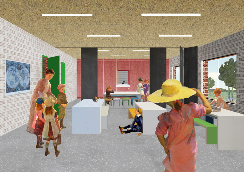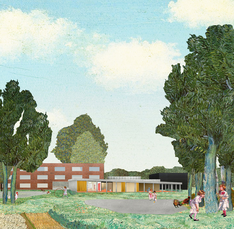 We propose to equate entity to identity. By appointing singular entities to each user, we establish a school that is ever-recognisable and an architectural language that undersets the educational trail of each child: from a kind of lowness and security to tall openness. The entities stand clustered according to the site’s edges and the most desirable interrelations. At their central meeting point, the core, the four entities surround a communal patio.