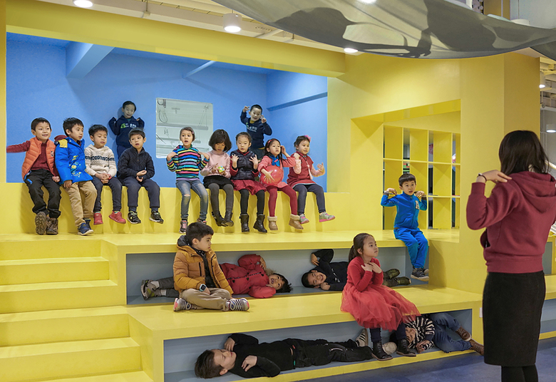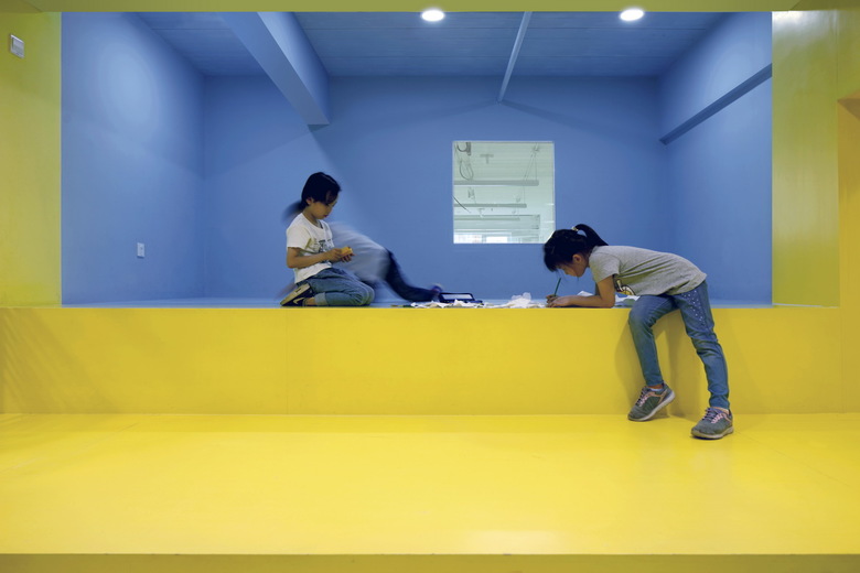 丰富的空间体验同时满足了集体与个人活动的需求。多功能体块的阶梯型座椅区可组织举办小型活动,也可与舞蹈教室的空间结合起来形成一个观演空间。空间里同时又有许多隐藏的小角落,可以一个人躲起来静静地看看书。