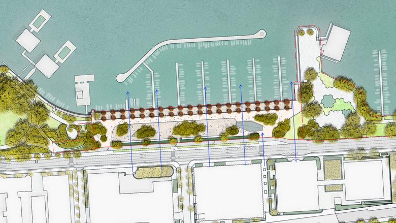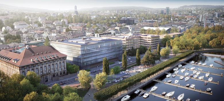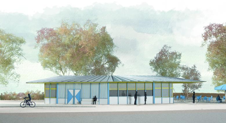 Der Kiosk will nicht mehr sein als er ist. Er ist keine Skulptur und kein Objekt, das nach Aufmerksamkeit sucht, sondern eine sorgfältig plazierte Gebrauchsarchitektur. Eine Bude, an der man sich verpflegen kann, mit zwei Toiletten. Er ist längsgerichtet, wie die Promenade selbst und sucht die Nähe der grossen Schnurbäume, die das Ende der Hafenpromenade besetzen. Die schräg zulaufende «Nase» streckt sich dem Freiraum entgegen, ein Vordach bietet Schutz. Auf der anderen Seite wird man von einer Sitzbank empfangen. Es gibt keine Rückseite. Der kleine Baukörper ist von allen Seiten zugänglich. Zum See hin bieten Glasvitrinen genügend Auslageflächen, um kleine Köstlichkeiten präsentieren zu können. Die Hebefenster können individuell geöffnet werden, sodass – je nach Jahreszeit – ein, zwei oder sogar drei Personen nebeneinander arbeiten können. In der kalten Jahreszeit sind nur die beiden vorderen Fenster geöffnet, sodass der Innenraum nicht zu stark auskühlt. Bei grossem Ansturm hilft die Länge für einen zügigen Ablauf. Die Dachkonstruktion bietet Platz für einen robusten Holzrolladen, der nachts und in Wintermonaten für den Sicherheitsabschluss sorgt. Das Dach sitzt abgelöst vom Baukörper auf dem hölzernen Unterbau. Das Glasband lässt den Kiosk leicht und durchlässig wirken. Durch die parallelen Flanken passt sich der Bau gut zwischen die Baulinien ein ohne sich den Bewegungsflüssen unterzuordnen. Denn ein bisschen kantig darf er schon sein, dieser Kiosk an der neuen Hafenpromenade.