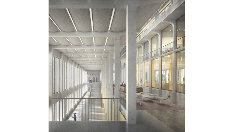 Connecting the world begins with in-house communication - Der interne Austausch ist für eine Firma mit 700 Mitarbeiterinnen und Mitarbeitern eine grosse Herausforderung. Die Kernidee unseres Entwurfs ist ein zentraler, mehrgeschossiger Raum, der Orientierung, Verbindung und Blickkontakt zwischen den verschiedenen Abteilungen und Arbeitsplätzen ermöglicht. Ein breites Angebot an speziellen Räumen wie ein Klavierzimmer, eine Werkstatt, ein Gebetsraum, eine Fitnessraum oder die Aussenterrassen bieten unterschiedliche Begegnungsort und erzeugen Bewegung zwischen den Geschossen. Schlussendlich geht es darum, eine Arbeitsumgebung zu erzeugen, in der sowohl konzentriertes Arbeiten wie auch einfacher und entspannter Austausch von Know How aller Mitarbeitenden möglich ist.
