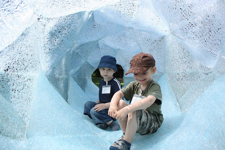 これを機に、新たに《Aqua-scape The Orangery version》を制作しました。工学院大学藤木研究室の学生とともに、丸1年という歳月をかけて完成させました。2006年につくった《Aqua-scape》は水の上に浮かべましたが、今回は緑の芝生の上に浮かんでいます。ファースト・バージョンが骨の無いクラゲだとすれば、新バージョンは透明なソフトシェルの殻にくるまれた甘エビといったところです。ポリカーボネートと中空ファイバー状のポリエチレン・クッション材のダブルスキンで構成されています。これにより、前回よりも軽く、かつ構造的に安定し、透明感が増しました。